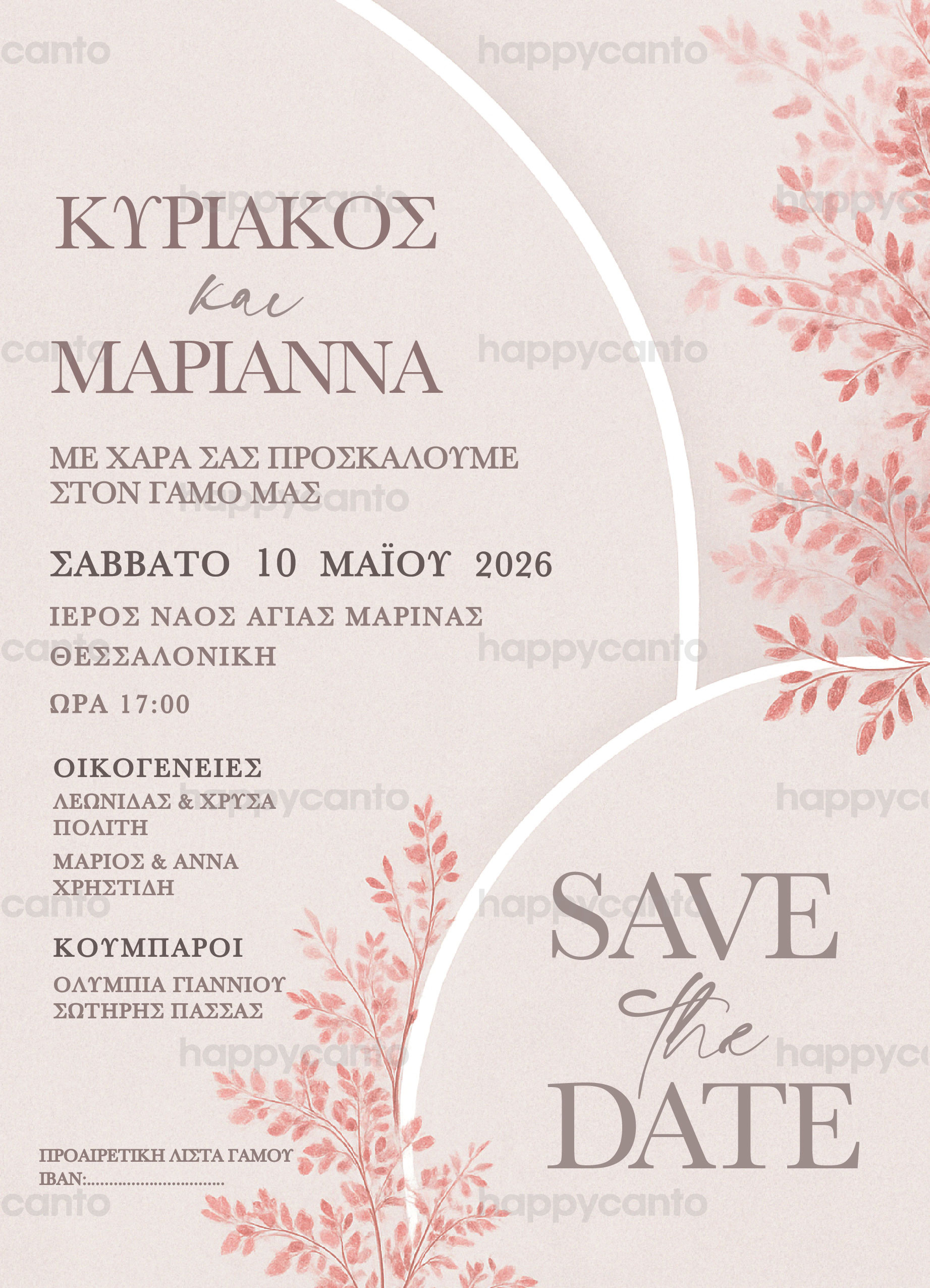 Γι’ αυτό σας προσκαλούμε στο γάμο μας που θα γίνει την Κυριακή 26 Μαρτίου στις 11:00 π.μ. στον Ιερό Ναό Αγίας Σοφίας Ψυχικού.