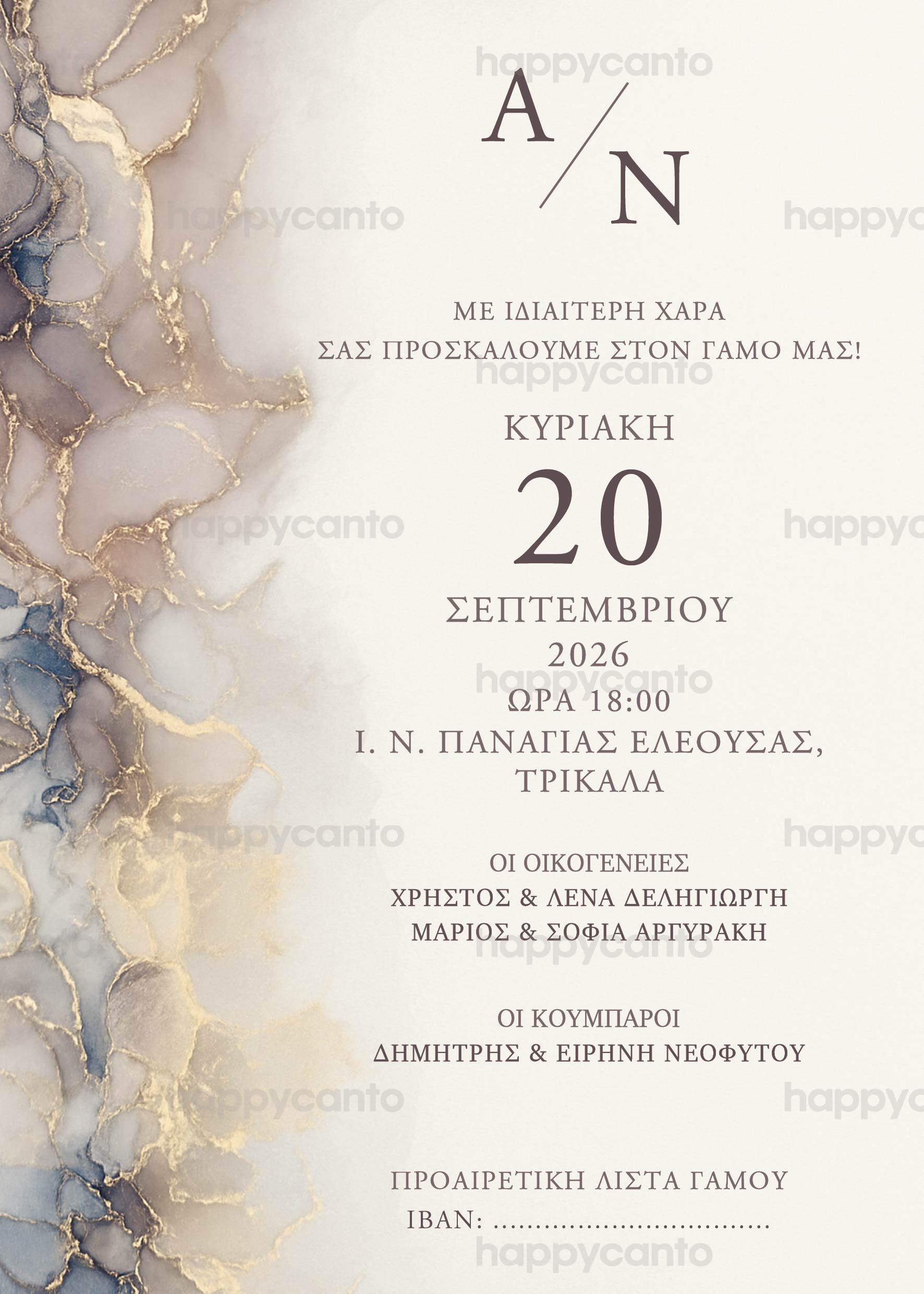Γι’ αυτό σας προσκαλούμε στο γάμο μας που θα γίνει την Κυριακή 26 Μαρτίου στις 11:00 π.μ. στον Ιερό Ναό Αγίας Σοφίας Ψυχικού.