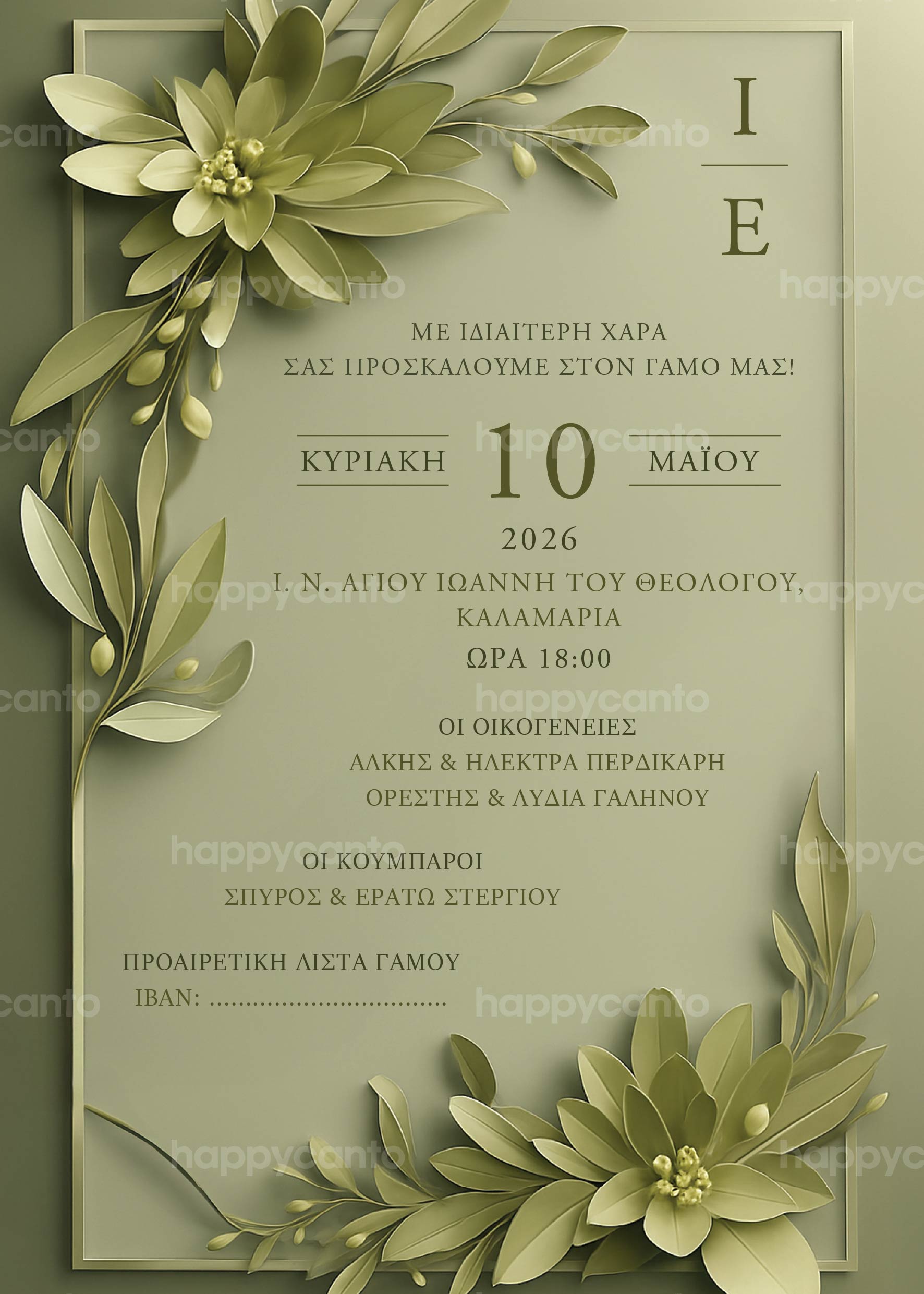 Γι’ αυτό σας προσκαλούμε στο γάμο μας που θα γίνει την Κυριακή 26 Μαρτίου στις 11:00 π.μ. στον Ιερό Ναό Αγίας Σοφίας Ψυχικού.