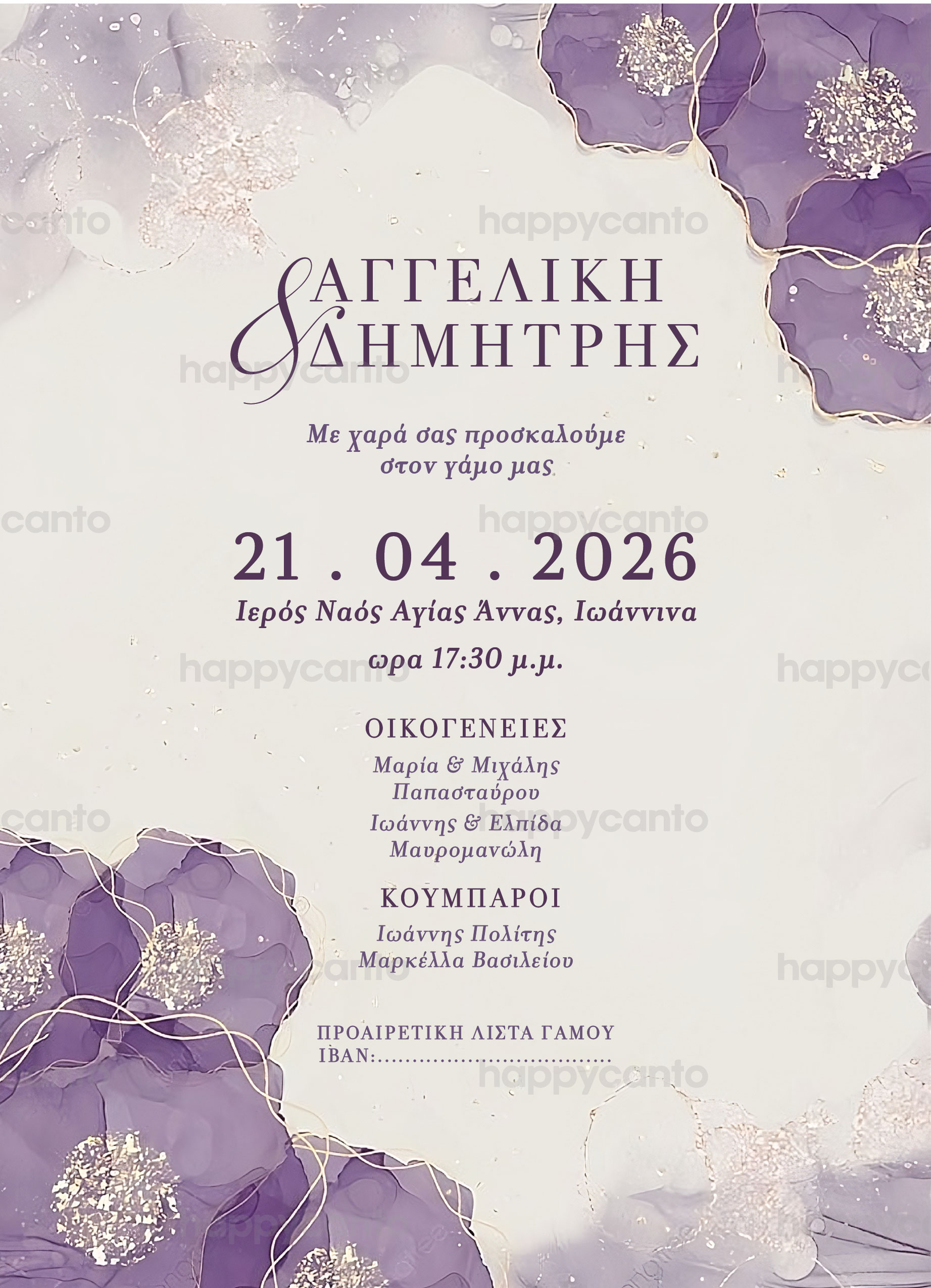 Γι’ αυτό σας προσκαλούμε στο γάμο μας που θα γίνει την Κυριακή 26 Μαρτίου στις 11:00 π.μ. στον Ιερό Ναό Αγίας Σοφίας Ψυχικού.