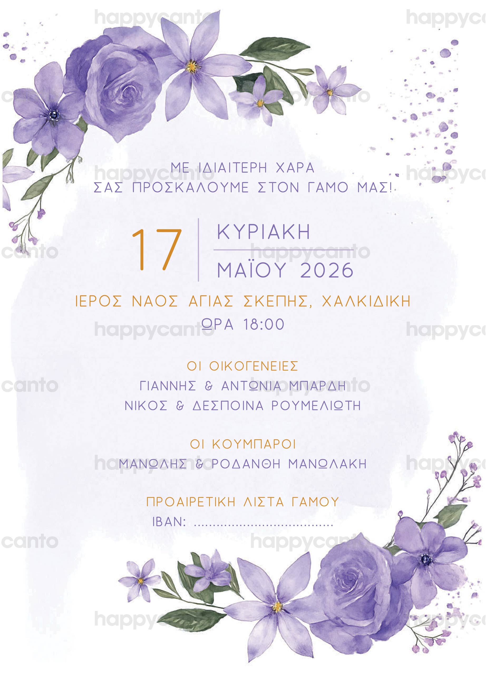 Γι’ αυτό σας προσκαλούμε στο γάμο μας που θα γίνει την Κυριακή 26 Μαρτίου στις 11:00 π.μ. στον Ιερό Ναό Αγίας Σοφίας Ψυχικού.