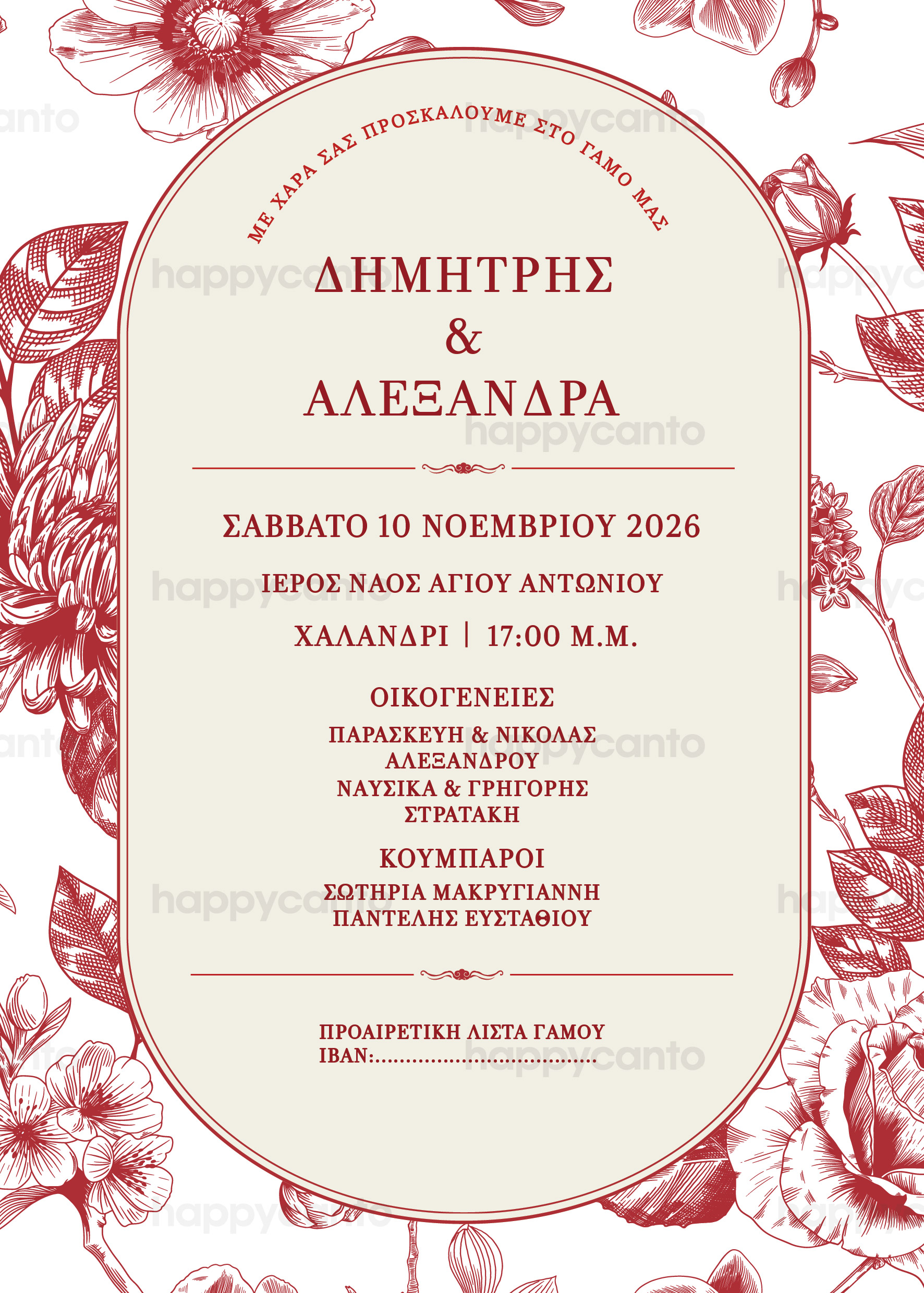 Γι’ αυτό σας προσκαλούμε στο γάμο μας που θα γίνει την Κυριακή 26 Μαρτίου στις 11:00 π.μ. στον Ιερό Ναό Αγίας Σοφίας Ψυχικού.